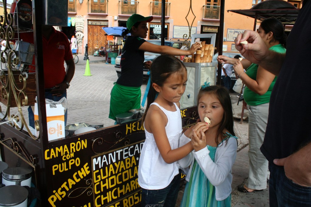 Dolores Hidalgo’s second claim to fame is its ice cream stands, which are ubiquitous all around the city’s central plaza. It’s not just that they have delicious home-made ice cream, it’s the selection of flavors that you would have never imagined! You can see the sign above (where my daughters are having a taste) listing some quite interesting offerings. For the sake of the experience, I did go with the Camaron con Pulpo ice cream. And yes, that is shrimp with octopus ice cream. Yes, I’m serious. Oh, how did it taste? Umm, I guess pretty much like what you’d expect shrimp with octopus ice cream to taste like. I opted to not indulge in a second scoop. 🙂